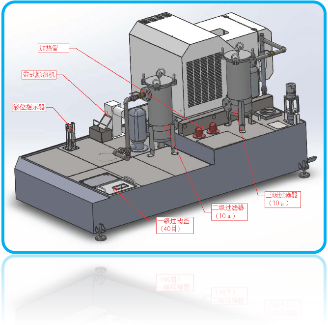 5、分布有带式除油机,加热管等,增强清洗效果。