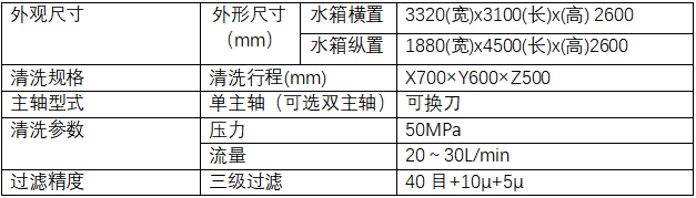 该机以高压水为清洗介质,通过CNC编程输入,自动给予指定工件以快速的高压清洗、去除毛刺。通过采用特殊的清洗喷嘴,以及CNC 转台(标配)、B轴(选配)等,可以进行6 面以及各深孔的清洗。